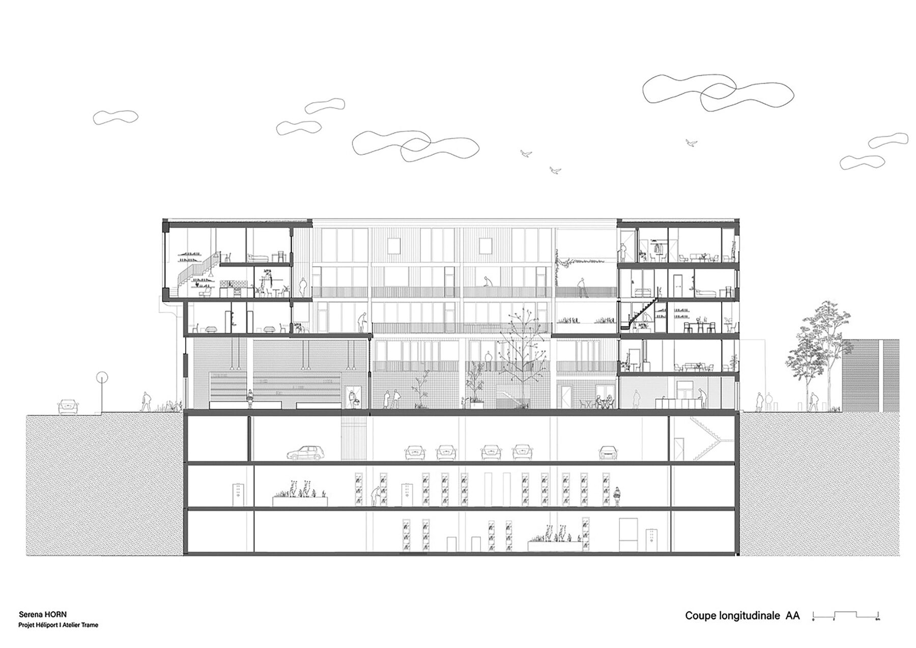 Als alternatief voor nieuwbouw wil Atelier Trame bestaande gebouwen een nieuw ontwerp geven en een architectuurbenadering ontwikkelen die naar de kern gaat van de maatschappelijke en ecologische uitdagingen van een veranderend stedelijk landschap. De studentenprojecten wenden stedelijke, architectonische, structurele en materiële eigenschappen van bestaande gebouwen aan, om mogelijke ruimtelijke en programmatische aanpassing te onderzoeken.