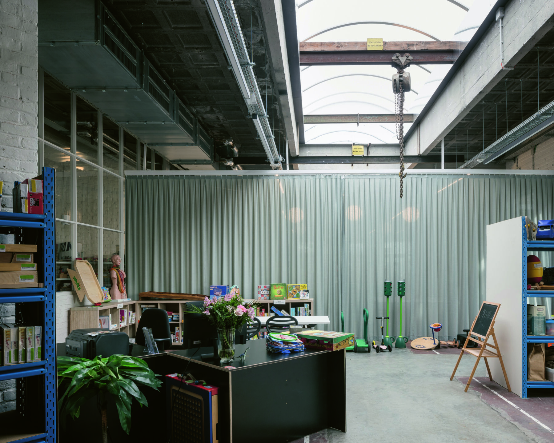 In de voormalige brandweerkazerne van Kortrijk heerst sinds kort opnieuw een gezellige drukte. Nu vzw Deelfabriek haar intrek heeft genomen in het gebouw, staat het opnieuw ten dienste van de stadsgemeenschap, dit keer in volle openheid en toegankelijkheid. Waar vroeger ladderwagens binnen- en buitenreden, komen nu mensen samen om te delen, te lenen of elkaar te ontmoeten. In zijn ontwerp gaat het Gentse bureau Atama (voorheen Trans architectuur stedenbouw) het gesprek aan met het beschermde gebouw. Het resultaat is een reflectie op het gebouw, zijn nieuwe functie en zijn beeld.