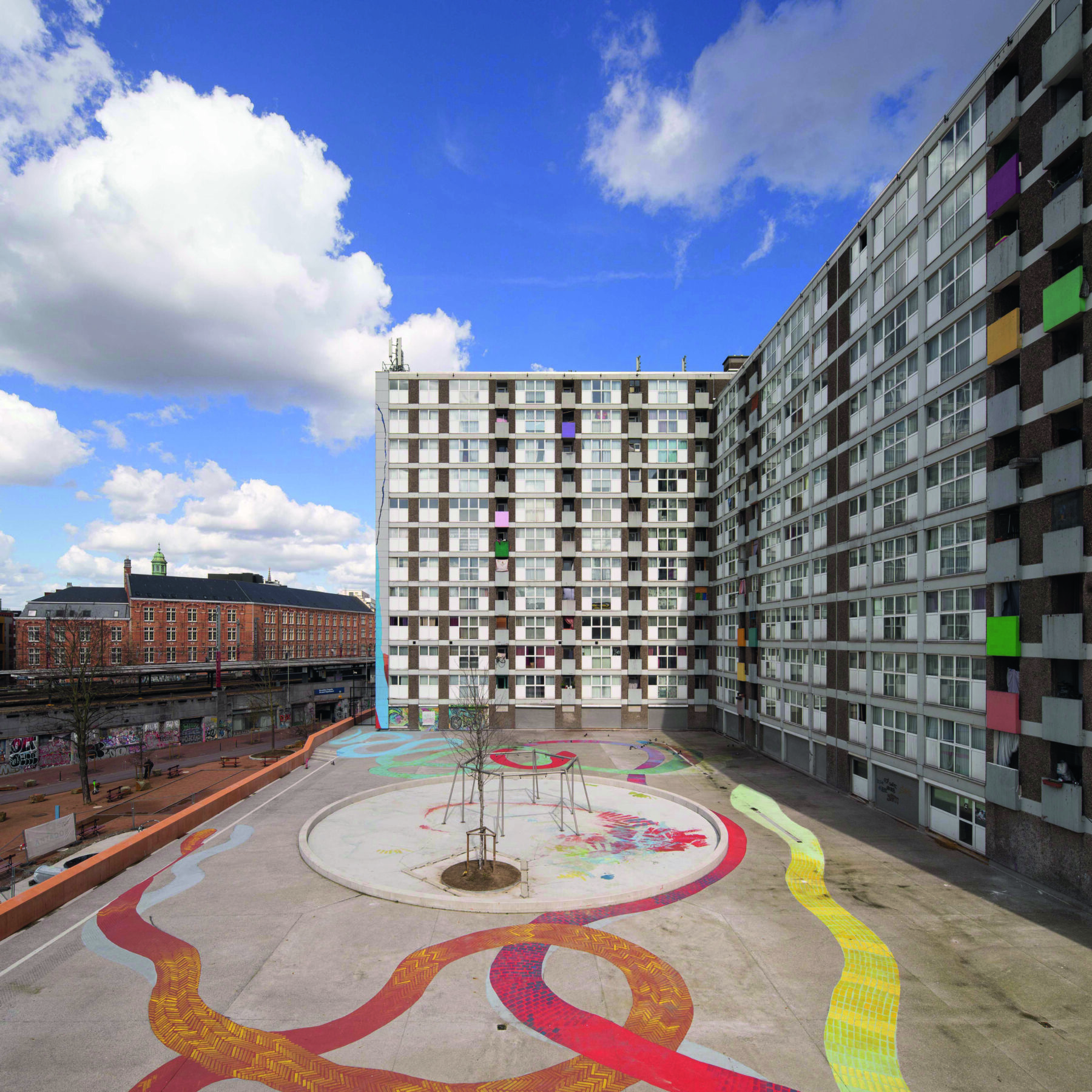 The block in the Marollen between Spiegelstraat, Ursulinenstraat and Brigittinenstraat survived the war unscathed, but then suffered greatly from the North-South train connection that cut the area in two in 1952. No less disastrous was the construction, in 1968, of a twelve-storey social-housing apartment building that was supposed to counteract decay and housing shortage in the neighbourhood. The entire city block had to make way for it. As a consolation prize, a small park was created at the foot of the residential tower’s esplanade. Only the seventeenth-century Brigittines Chapel miraculously escaped demolition. The design by Générale1 for Urban Park Jonction links all those remains back into a coherent urban space. It accomplishes that hat trick with a single, simple gesture. 1 L’Escaut Architectures won the competition. Générale, an offshoot of L’Escaut, developed the project in the following years.