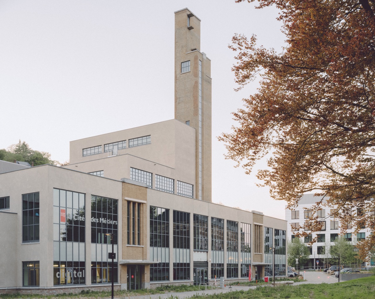 In the early 1930s, the University of Liège acquired undeveloped land around the Val-Benoît Abbey to build a campus dedicated to engineering. In this era of rapid progress, engineering professors surrounded themselves with committed modernist architects. A series of innovative buildings were erected on ten hectares of land, their avant-garde techniques echoing the international exhibitions held in Liège during that decade. The thermoelectric power station building, designed by Albert Duesberg in 1937, is one of these remarkable constructions, a manifesto of progress. With its ocean liner appearance and iconic tower, the building stands out for its post-and-beam system, large glass facades and boiler room capable of supplying the entire site with hot water and electricity via an underground network. Barely thirty years after its construction, the University relocated its activities to the heights of Liège, gradually abandoning the campus. At the end of the 2000s, when the buildings were in an advanced state of disrepair, the SPI – the province’s territorial development agency – bought the site with the ambition of transforming the campus into a city district. It launched an urban planning competition to convert the power station into a vocational training centre.