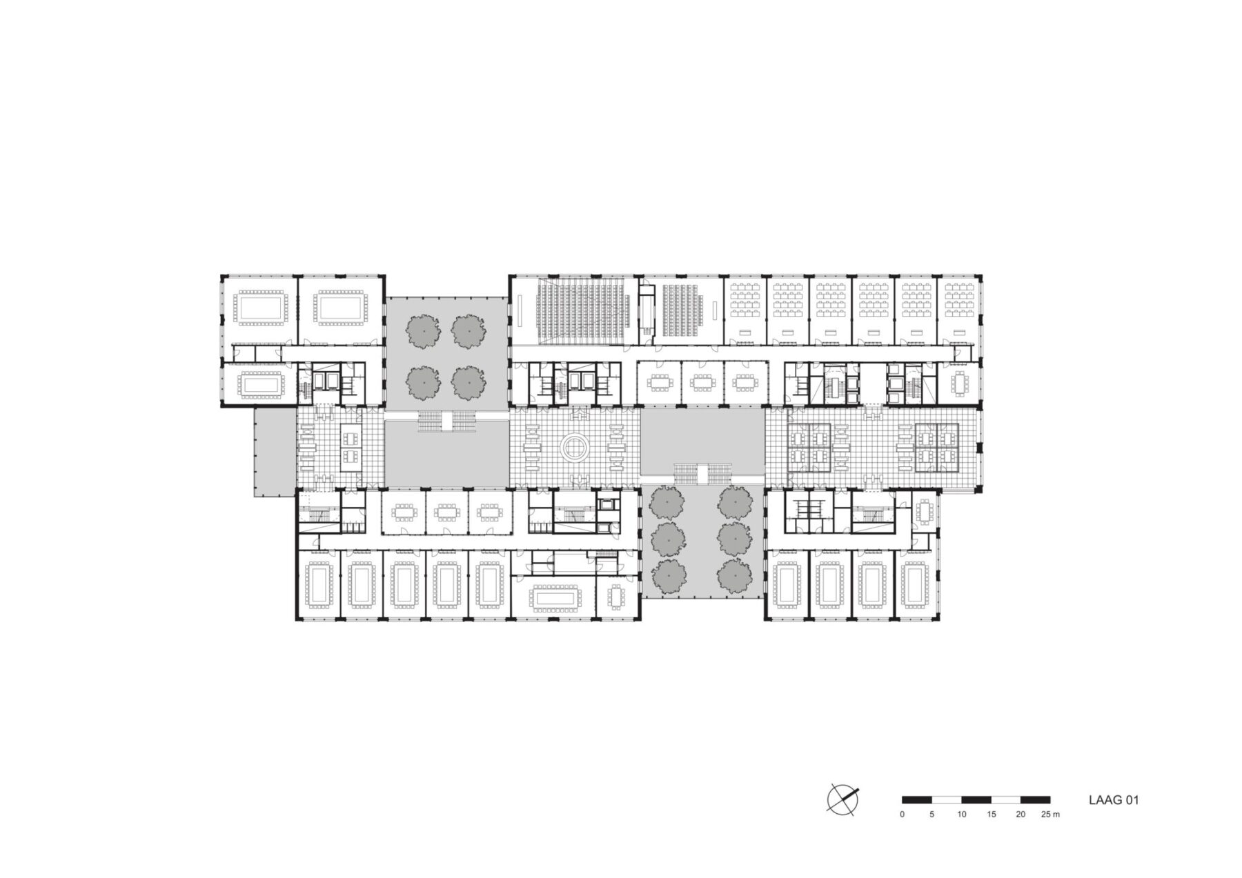 The workspaces and meeting areas are laid out like an urban plan comprising streets and squares