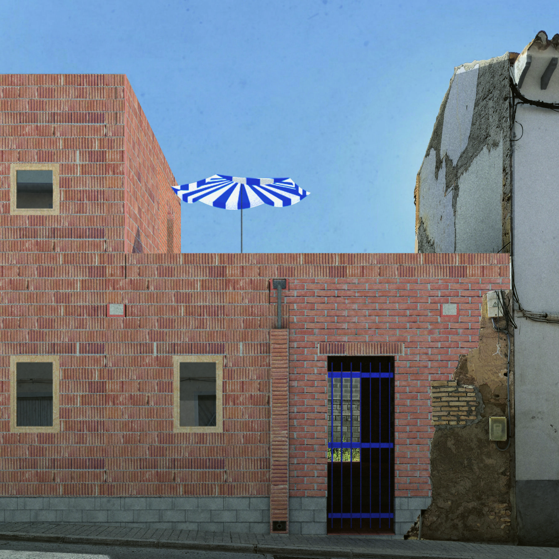 Dans « Stoffwechsel of Peralta de Alcofea », Marcos Suelves cherche l’ancrage local. La famille Suelves vit depuis toujours dans le nord de l’Espagne, au pied des Pyrénées, dans le petit village de Peralta de Alcofea. En raison d’un risque d’effondrement, la maison en terre qui a abrité plusieurs générations successives devait être démolie ou rénovée. Le projet de nouvelle habitation avec atelier qui remplace la maison familiale est un noble geste envers la tante qui y habitait encore. Grâce à une étude méticuleuse des méthodes et matériaux de construction de la région de Somontano, le projet s’inscrit humblement dans l’esprit rural des lieux et réduit son empreinte écologique. Par les briques de différents formats et textures utilisées pour créer une façade à facettes, le raffinement du langage architectural rehausse l’esthétique du projet. La variété résulte d’une sélection pragmatique de types de briques d’après leurs caractéristiques : solidité, performances thermiques, prix… Les briques les plus solides constituent le squelette de la structure, les briques isolantes délimitent les espaces intérieurs, et les murs intérieurs non porteurs sont réalisés dans les matériaux les moins chers. Ces grandes lignes délimitent un espace de jeu à l’intérieur duquel les matériaux sont mis en oeuvre de manière atypique. Des ouvertures rondes dans la section transversale des briques permettent de suspendre les protections solaires. Même les descentes d’eau deviennent des éléments tectoniques qui rythment la composition fragmentée de la façade. À Peralta, le changement contextualisé de matériaux se traduit par une architecture vernaculaire et éclectique qui, grâce au système, affiche une certaine flexibilité inhérente.