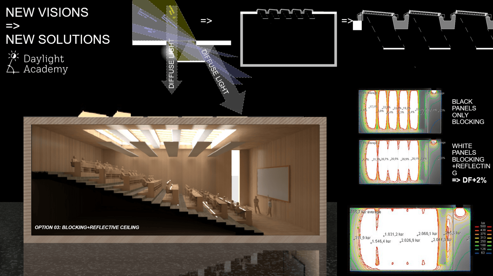 La Daylight Academy est née d’une collaboration interdisciplinaire réunissant architectes, étudiants, scientifiques et passionnés de lumière naturelle. Elle vise à vous fournir les outils nécessaires pour transformer la lumière naturelle en un véritable atout pour vos projets.