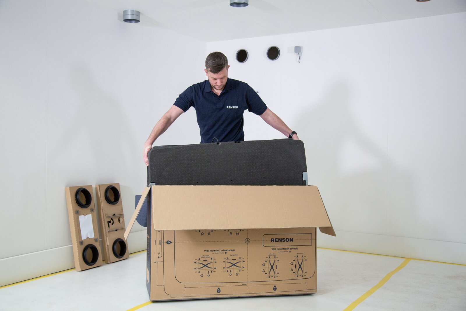Le gabarit de forage et le système de suspension Quick-Fix assurent un montage simple et rapide. En outre, Renson facilite le montage et le réglage de la Flux+ Flat grâce aux mêmes outils numériques que la Healthbox 3.0 : la plateforme My-Lio et l’appli Renson Ventilation Set-up.