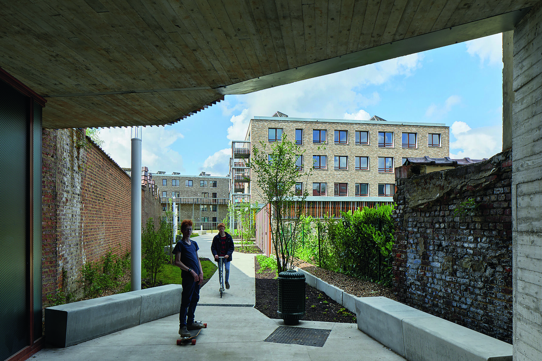Au sud de Bruxelles, BOB361 a modélisé un séduisant petit quartier niché au cœur d’un îlot qui était jusque-là fermé. Exploitant une diversité de typologies spatiales connues, ces bâtiments se déploient à l’intérieur et autour d’un domaine public nouvellement récupéré. Dans ce domaine, les motivations clés sont les principes d’aménagement durable, une transition tout en nuances entre public et privé, et l’inclusion écologique.