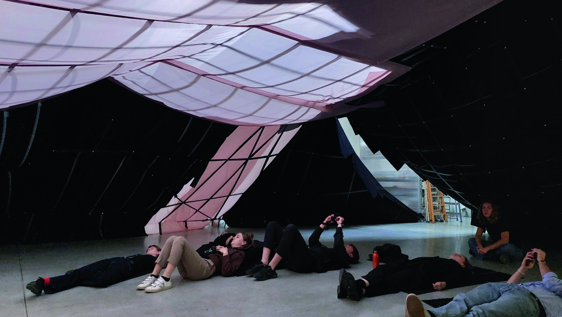 Voiles ou carapaces, drapés colorés et onctueux ou détournement de matériaux techniques : éclectiques et savamment composées pour dépasser la contrainte, les interventions spatiales de Chevalier Masson anticipent l’espace habité en dialoguant avec les surfaces lisses de béton, de bois ou de vitrage de l’architecture qu’elles occupent.