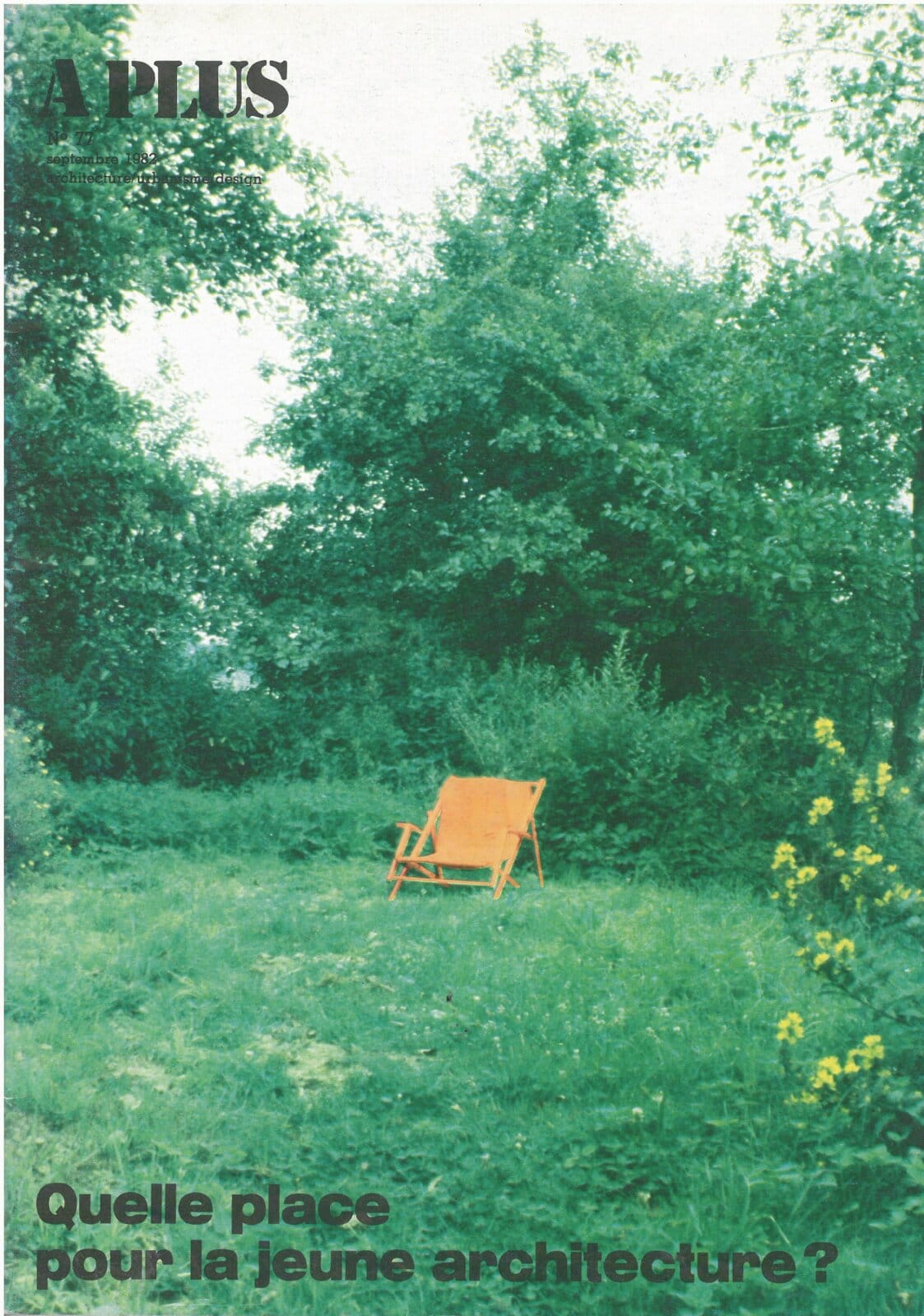 Sur la couverture du magazine A+77 de septembre 1982, on peut voir un transat orange dans un jardin verdoyant. Exception faite de quelques fleurs jaunes, le jardin est totalement vide, métaphore du grand néant où avait atterri l’architecture belge à la fin des années 1970. C’est précisément dans ce vide qu’A+ s’attelle alors à mener le débat sur l’architecture en présentant le travail de vingt jeunes architectes sous l’intitulé « Quelle place pour la jeune architecture ? ».