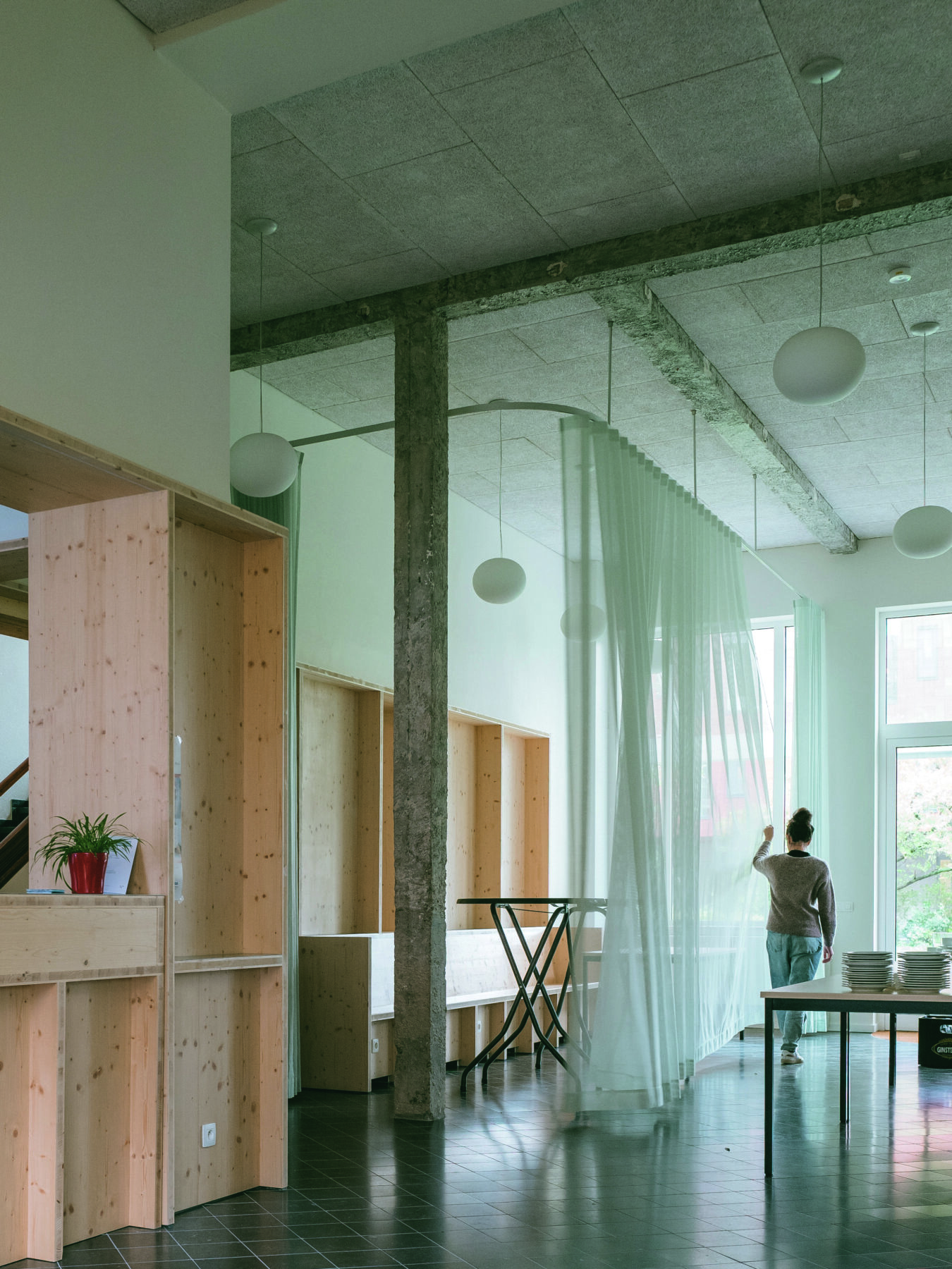 Pour l’aménagement de Tabor, Studio Lauka, le bureau d’architecture de Mira De Winne et Aaron Michels, a joué un véritable match à domicile, la table à dessin n’étant qu’à un jet de pierre de l’emplacement du projet. Lors d’une discussion dans les bureaux du Studio, cette proximité amène à une réflexion sur la position du concepteur et le champ de tension entre les statuts de propriétaire et d’auteur. Ce dernier point n’intéresse pas particulièrement Studio Lauka, explique Aaron Michels : peu importe qu’on se souvienne encore du nom du créateur d’un lieu ou d’un bâtiment au bout de deux ou trois ans. En revanche, ce qui compte, c’est de créer (éventuellement dans le cadre de coopérations créatives) des endroits que les utilisateurs peuvent s’approprier totalement et avec la plus grande satisfaction.