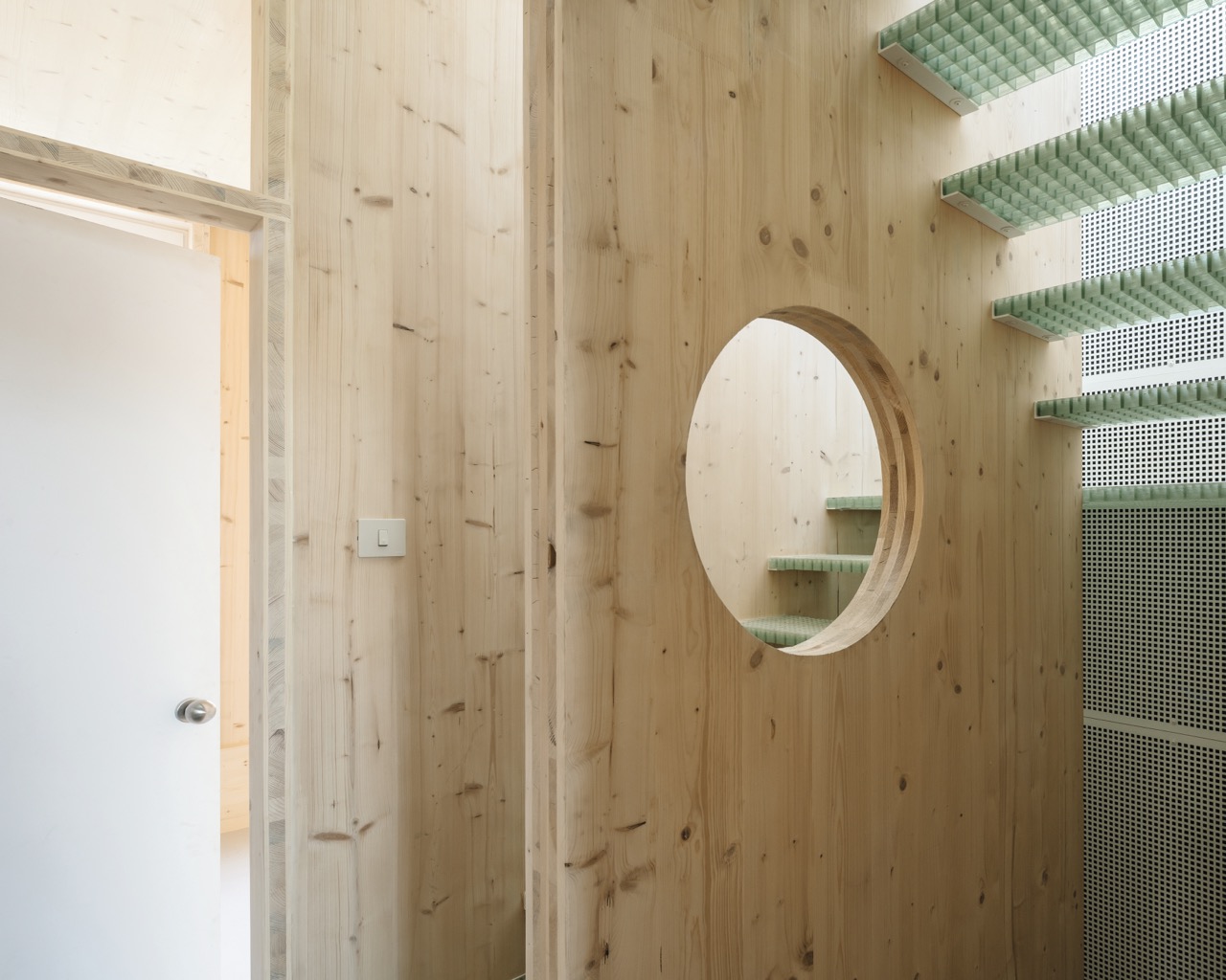 Le projet de la maison Touw s’est développé autour de deux questions centrales: comment concrétiser le concept de maison de base, et comment inclure dans un projet les possibilités d’extension d’une habitation sur une parcelle aux dimensions limitées. Ces questions ont abouti à une expérience: en plus de vendre une maison de base compacte de 120 m2, AG Vespa fournit également les permis, les préparatifs techniques et le projet de futurs agrandissements. Pour Felt, une première maison doit être abordable et compacte, mais doit aussi pouvoir évoluer avec ses occupants: «Un peu comme une glace au yaourt sur laquelle on viendrait ajouter des toppings. En soi, le yaourt, c’est nourrissant, mais c’est bien meilleur avec des fruits frais», explique Jasper Stevens en riant. Les concepteurs ont imaginé une structure de base compacte et abordable en CLT, tout en s’autorisant quelques ajouts plus qu’intéressants, tout droit sortis de leur enthousiasme débridé. La structure en CLT a permis aux architectes de construire la maison de la même manière que la maquette. Le projet peut en outre servir de prototype pour des habitations sur d’autres parcelles urbaines, avec des toppings spécifiquement adaptés au site.