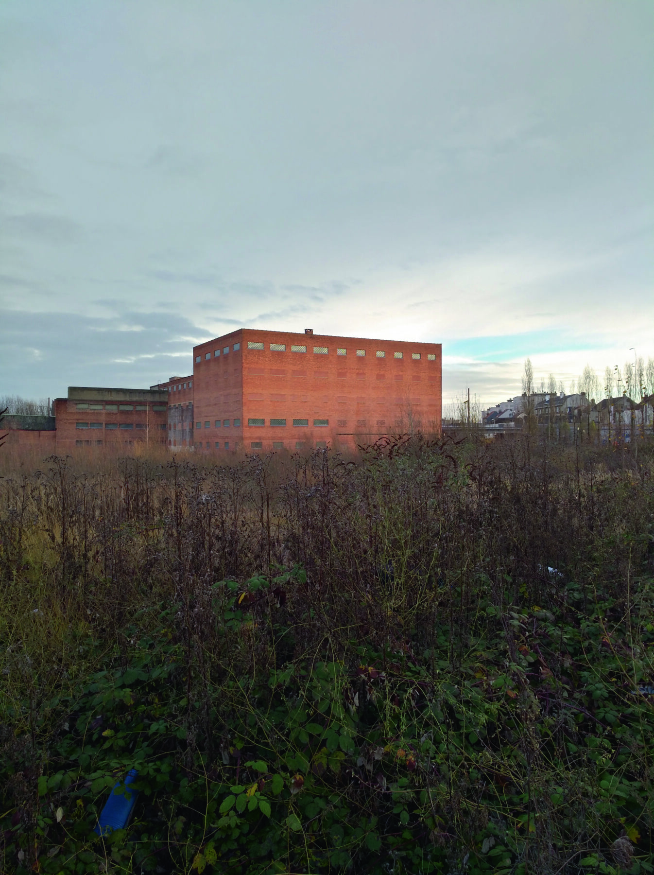 “De gebouwen vertellen het verhaal van de site niet alleen dankzij hun volumes; ook de gevels roepen een gevoel van mysterie en diepte op. Er is een expliciet verband tussen het Rijksarchief in Brussel en ons project voor de uitbreiding van het schoolcomplex van de Ursulinen in Mechelen* (2011- 2019). We hebben die referentie bewust benadrukt: door één enkel materiaal te gebruiken met gevarieerd en specifiek voegwerk en dichtgemetselde raamopeningen van lateien en drempels te voorzien. Kortom, een gebouw dat zich voorbereidt op noden die ongetwijfeld zullen evolueren door het gebruik ervan. We besloten om de chronologie van het gebouw te verstoren door naar industriële archetypes te verwijzen. De nieuwe constructies nemen een loopje met het geheugen van de buurtbewoners. Het lijkt of de toegevoegde volumes de oorspronkelijke zijn en misschien ook al meermaals gerenoveerd werden, terwijl de rest van het blok er geleidelijk omheen werd gebouwd.” Op die manier verdraait Label de waarheid en speelt met de chronologie van gebouwen.