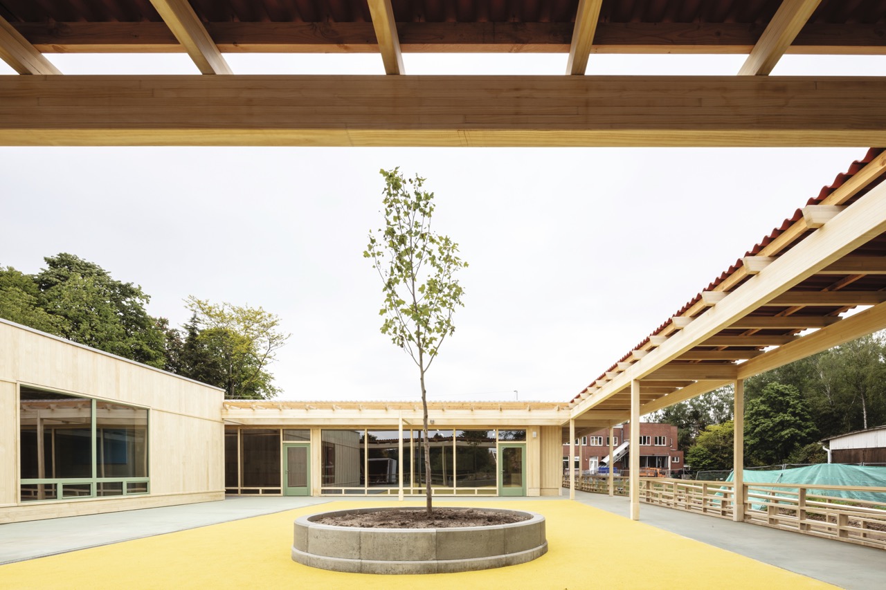 Hoe creëer je als ontwerper een aangename leer- en speelomgeving voor kinderen en jongeren wanneer de strikte regelgeving, de praktische randvoorwaarden en het krappe budget het ontwerp dreigen te beheersen? Op die vraag gaven de ontwerpers van Compagnie O met de school voor jongeren met een motorisch meervoudige en ernstige mentale beperking in de bosrijke omgeving van Brasschaat een ontroerend kleurrijk antwoord.