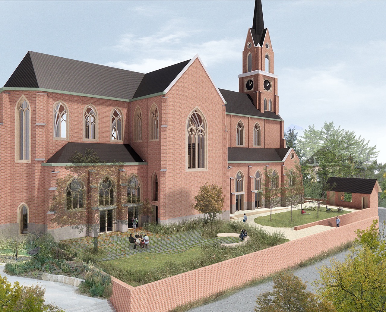 De uitdagende opdracht voor de renovatie en herbestemming van de Sint-Amanduskerk in Strombeek-Bever, een deelgemeente van Grimbergen in de rand van Brussel, lijkt haast een poging om de omineuze voorspelling in Victor Hugo’s Notre-Dame de Paris (1831) te weerleggen: de profetie van aartsdiaken Frollo, die terwijl hij een boek vergelijkt met zijn geliefde kathedraal zegt: ‘Ceci tuera cela’ – het boek, en bij uitbreiding de boekdrukkunst, zal de kathedraal vervangen.
