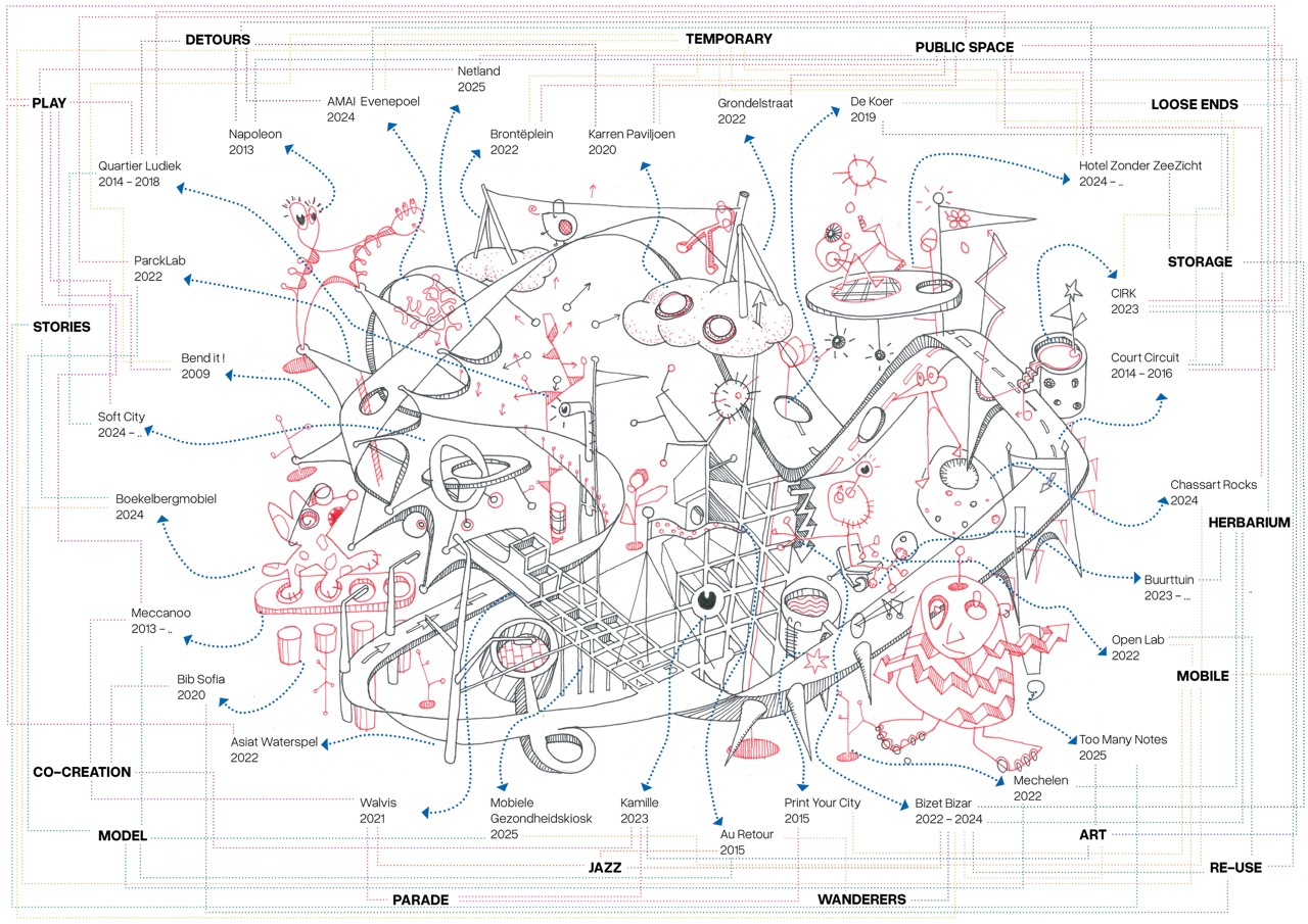 Ze lieten een walvis te water en voeren ermee door Vlaanderen. Ze startten een langlopend project over publieke ruimte voor informeel spel onder de titel Soft City. Ze bouwen een Hotel Zonder ZeeZicht in Oostende. Ze zijn naar eigen zeggen geen participatiebureau en ook geen architectenbureau, maar die ontkenning verklapt juist hun referentiekader. Dear pigs bestaat uit vier architecten die ons spelenderwijs doen nadenken over de stad, zodat die uiteindelijk zichzelf organiseert. Lieven De Cauter ging met hen in gesprek.