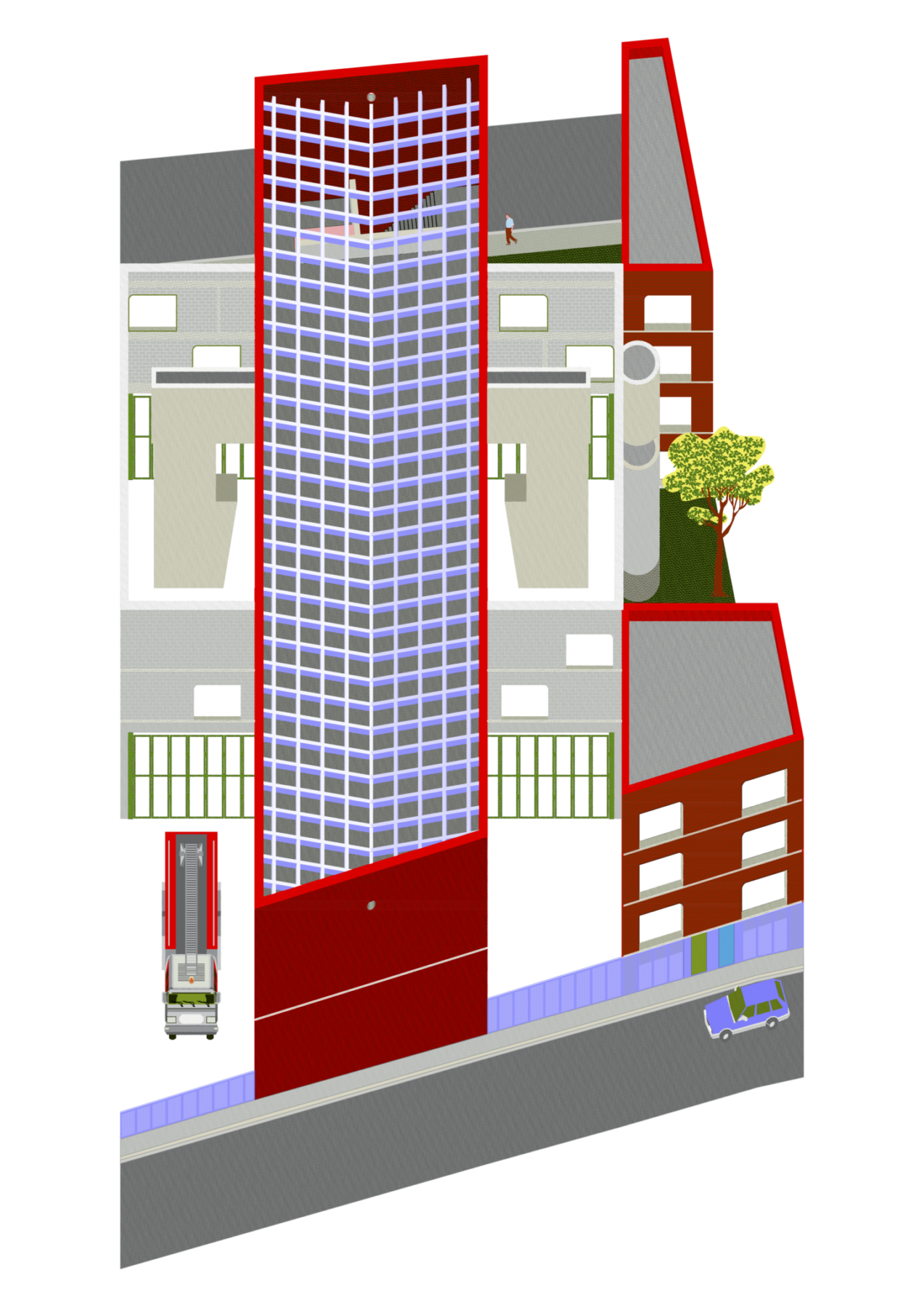 In 2013, het jaar waarin Sara Noel Costa de Araujo Studio SNCDA oprichtte, won ze met haar bureau meteen ook de wedstrijd voor dit project. Ze overtrof daarbij de voorstellen van enkele grote namen uit de Vlaamse architectuurwereld. Noel bouwde haar praktijk uit terwijl ze de brandweerkazerne in Dilbeek realiseerde, aan de rand van Brussel in het Vlaams Gewest. Niet zonder bravoure flirt ze met de structuur van bakstenen, refererend aan een politiek gestuurd Vlaams provincialisme… zonder evenwel één element in gebakken aarde te gebruiken.