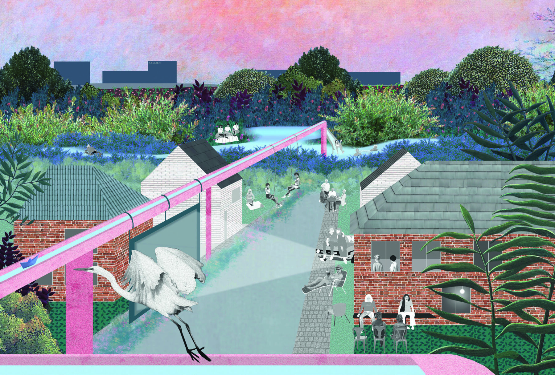 In Woluwe Waterland1 verbinden ontwerpbureaus 1010au en Fallow een complexe wateropgave met een serie kleinschalige en maatschappelijk waardevolle projecten. De bestuurlijke verantwoordelijkheid voor die opgave wordt op buurtniveau, dicht bij bewoners en gebruikers, georganiseerd. Essentiële samenhang wordt ontleend aan de omvattende figuur van het stroombekken. Door die hydrologische contour als sturend kader te kiezen, verankert Woluwe Waterland zichzelf in de wetmatigheden van het landschap. 1 Woluwe Waterland is onderdeel van een breder onderzoek naar de 20ste-eeuwse Rand van Brussel dat in 2021 werd uitgevoerd in het kader van Labo Ruimte XX+I, een initiatief van het Team Vlaams Bouwmeester, Labo ruimte, Brusselse Bouwmeester en Perspective Brussel.