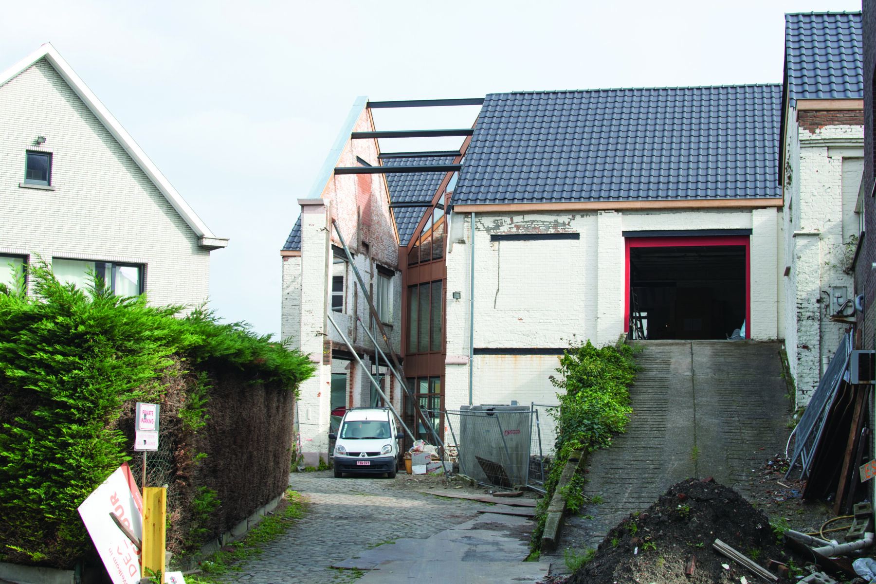 Timelab, gelegen in een woonwijk op een onregelmatig perceel met aan de straatkant een huis uit de jaren zeventig en aan de achterzijde twee aangrenzende industriële loodsen uit 1934, streeft ernaar een steeds wisselend aanbod aan activiteiten te huisvesten. De meest recente plannen omvatten een coworkingruimte, een prototypelab, een auditorium, een bar en een gemeenschappelijke tuin, evenals verschillende studio’s die voor langere tijd kunnen worden gehuurd. Op termijn zullen 20 garageboxen op het terrein worden omgevormd tot een klein park. Op deze manier wil Timelab een creatieve hub worden waar samenwerking wordt gestimuleerd, met respect voor de autonomie van elke betrokken actor. Het project heeft ook tot doel dit verlaten industrieterrein nieuw leven in te blazen als productieve ruimte. Bovendien vormt het een bewust tegenwicht tegen de gangbare praktijk in Belgische steden om dergelijke afgesloten braakliggende terreinen te vullen met garageboxen of parkeerplaatsen, wat weliswaar winstgevend kan zijn voor investeerders, maar nadelig is voor de buurt. In plaats daarvan maakt Timelab van het terrein een levendige en inspirerende openbare ontmoetingsplaats.
