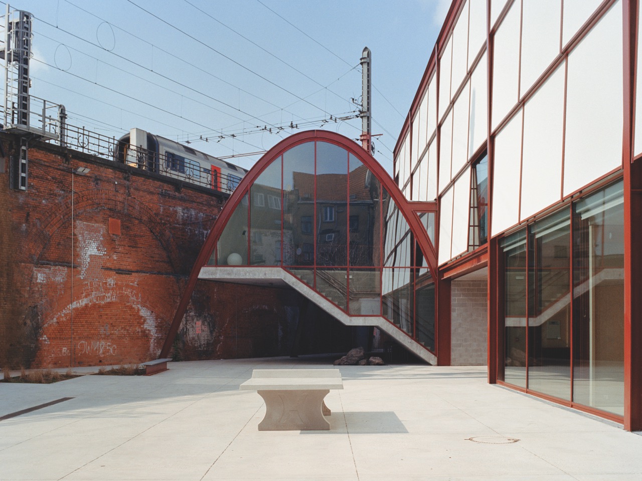 Sportcentrum Nieuwland, uitgevoerd door MDW Architecture, verrijst vandaag op een stuk grond dat er sinds de aanleg van de Brusselse Noord-Zuidverbinding braak bij lag. Het gebouw getuigt van een veerkrachtige architectuur die de nabijheid van de sporen als meerwaarde benut.